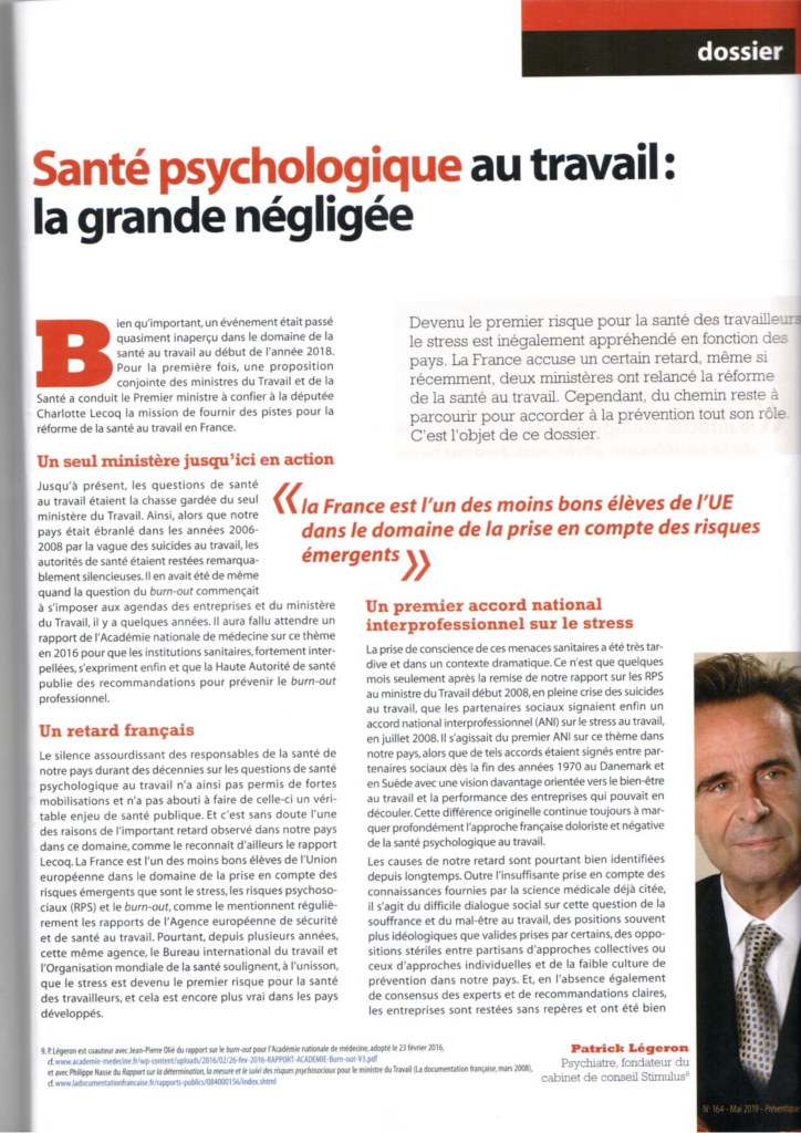 Retrouvez le point de vue de Patrick Légeron, Psychiatre et fondateur du cabinet de conseil Stimulus, membre de la FIRPS.